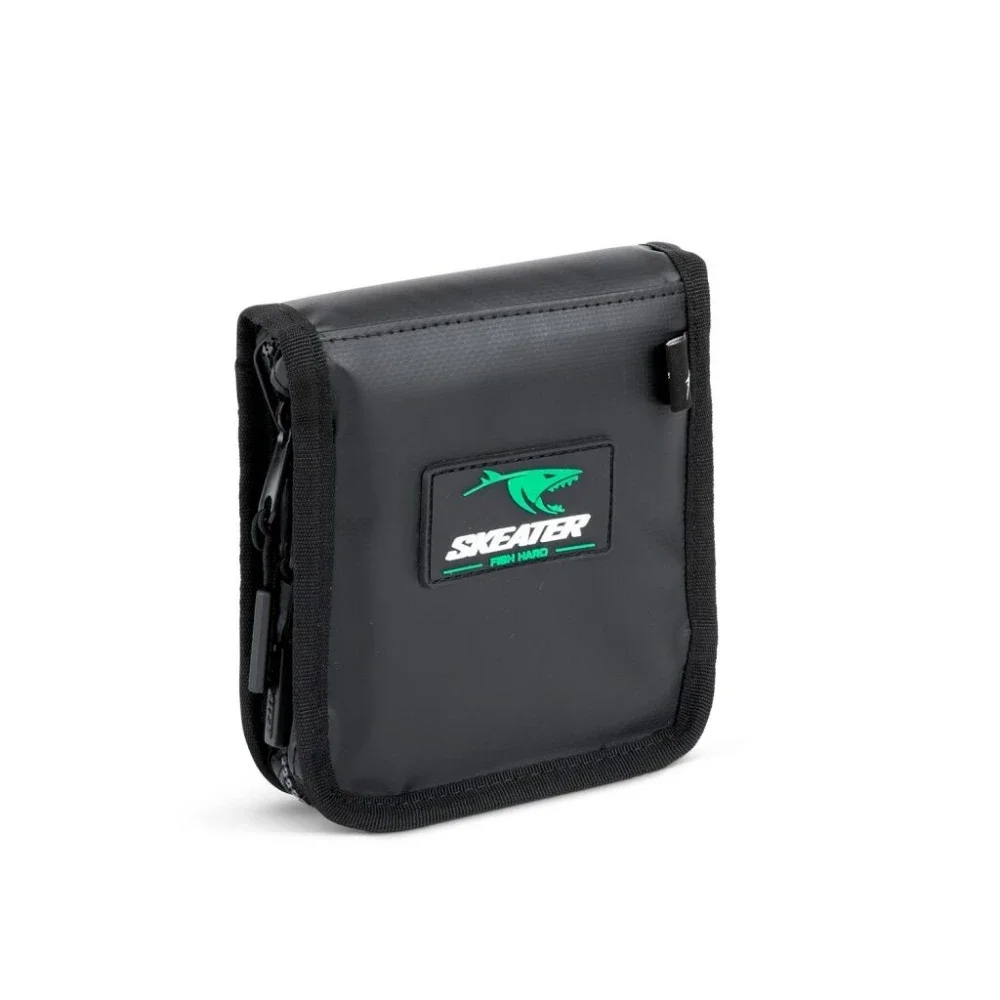 Met uitneembare sleeves en een meshvak blijft alles netjes geordend en direct toegankelijk. De wallet is gemaakt van duurzaam, dubbel geweven gecoat polyester en is bestand tegen zware omstandigheden. Dankzij het stevige handvat en de veilige sluitingen is de wallet comfortabel te vervoeren en eenvoudig in gebruik. Bovendien past hij perfect bovenop de Skeater Carryall Cooler Bait Bag.