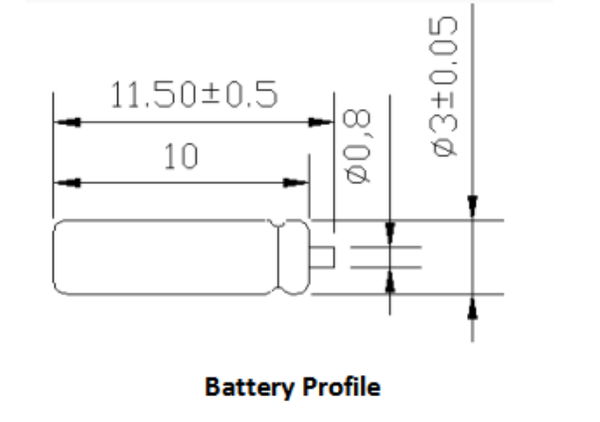 Afmetingen: Ø 3,0 ± 0,05X11,5 ± 0,5