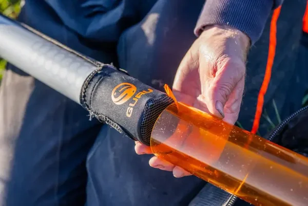 Wanneer de Guru Pole Safe op een stok is geplaatst, past hij in een standaard buis of de X-Case en voorkomt hij dat de stok rammelt tijdens transport. Deze hebben ook een gaasuiteinde, zodat water er gemakkelijk uit kan lopen en er wat lucht in de stok kan komen. Zo voorkomt u dat er een vacuüm ontstaat als de stok vochtig wordt opgeborgen.